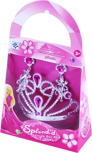 Korona razem z kolczykami zapewnia elegancki wygląd dzięki kombinacji srebrnego koloru i różowych kamieni.