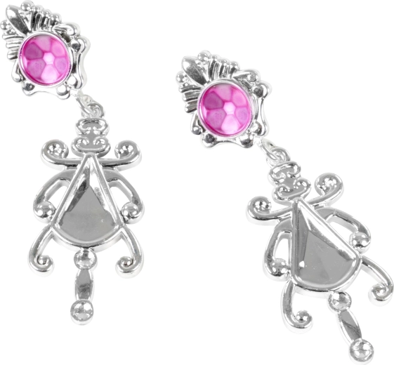 Różowe ozdobne kamienie na koronie i kolczykach dodają zabawy i błysku.