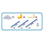 Zestaw zawiera kolorowe złącza, które ułatwiają składanie oraz trzymają konstrukcję razem.