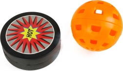 Opakowanie zawiera wszystko, co potrzebne do szybkiej gry - piłkę, krążek i dwa kije do hokeja.