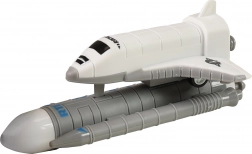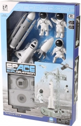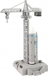 - Figurki astronautów, rakieta, statek kosmiczny, platforma startowa, żuraw