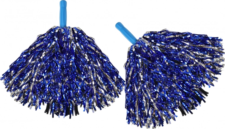 Pompony z kombinacją niebiesko‑srebrnych frędzli wyniosą każdy występ na wyższy poziom.