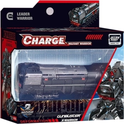 Rewelacyjny metalowy czarny minirobot, który łatwo przekształcisz w lokomotywę! Długość ok. 10 cm.