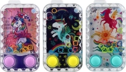 Wodna gra Jednorożec to świetny sposób, aby zająć dzieci, a jednocześnie rozwijać ich koncentrację i cierpliwość. Zasada jest prosta, ale wciągająca: naciskając przyciski, starasz się umieścić pływające kółeczka na bolcach. Gra dostępna jest w kilku wariantach z motywem magicznych jednorożców.