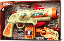Mocny i zabawny pistolet piankowy Huntsman Big Brute (33 cm) o zasięgu do 18 m zapewnia akcję bez kompromisów. Magazynek na 6 strzałów oraz zestaw z 9 piankowymi nabojami gwarantują długą zabawę, a naciągnięcie kurka automatycznie przesuwa magazynek na kolejny strzał, po czym naciśnięcie spustu natychmiast wystrzeliwuje.