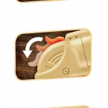 - Naciągnięcie kurka z tyłu przesuwa magazynek; strzał po naciśnięciu spustu