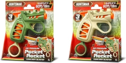 Kompaktowy kieszonkowy pistolet HUNTSMAN o długości 13 cm zachwyca prostą obsługą i zasięgiem do 18 m. Pociski łatwo wkłada się do lufy, ładowanie odbywa się poprzez naciągnięcie pierścienia w dolnej części, a strzał uruchamia spust. W zestawie znajdziesz 3 piankowe pociski, a do wyboru są 2 wersje kolorystyczne – zielona i brązowa.