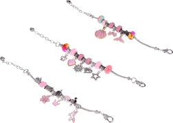 Miks różowych, srebrnych i złotych akcentów, woskowane sznureczki oraz różne kształty zawieszek pobudzają wyobraźnię i rozwijają małą motorykę. Każda bransoletka będzie wyjątkowa.