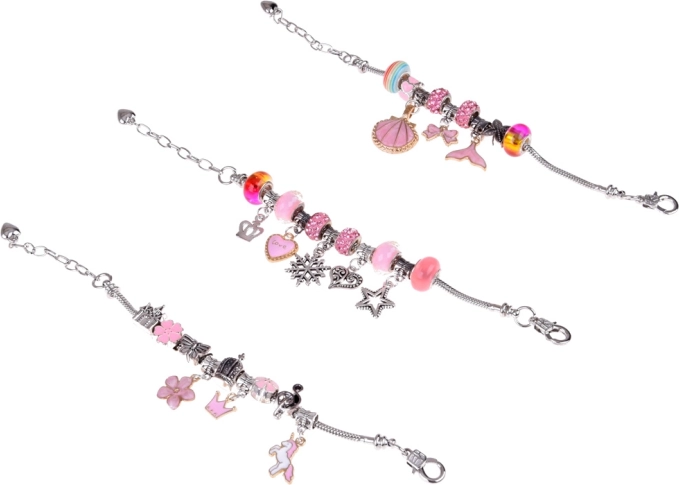 Stwórz jedyne w swoim rodzaju bransoletki dokładnie w Twoim stylu. Ten zestaw w srebrnym wydaniu z różowymi i złotymi akcentami oferuje bogaty wybór koralików i zawieszek, dzięki czemu każda biżuteria będzie oryginalna. Tworzenie jednocześnie wspiera małą motorykę, cierpliwość i kreatywność – zabawa, która ma sens.