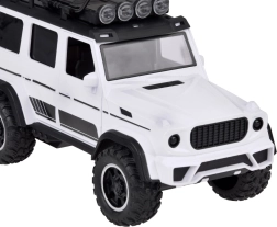 Wyrusz na przygodę z samochodem terenowym OFF-ROAD, który łączy wytrzymałą konstrukcję z interaktywnymi funkcjami. Dzięki świecącym światłom LED oraz dźwiękom klaksonu i alarmu zabawa jest jeszcze bardziej realistyczna. Otwierane przednie drzwi i dopracowane detale podkreślają atrakcyjny wygląd pojazdu.