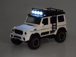 Po naciśnięciu górnego przycisku włączają się światła LED, a także rozlega się klakson lub sygnały ostrzegawcze – wrażenia jak w prawdziwym off-roadzie.