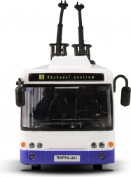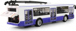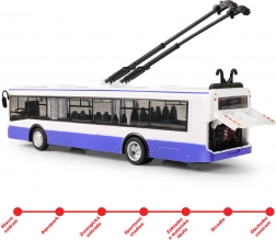 Szybko wsiadać, zamknąć drzwi i jedziemy! Ten realistyczny trolejbus o długości 28 cm w skali 1:43 ogłasza przystanki w języku czeskim i jeździ na napęd wsteczny. Otwierane drzwi można obsługiwać ręcznie, automatyczne zamykanie przyciskiem na dachu towarzyszy migającym przednim światłom oraz czeskim zapowiedziom. Baterie są w zestawie – świetny prezent dla małych kierowców i fanów ekologicznego transportu.