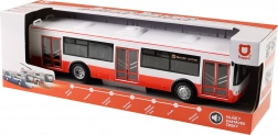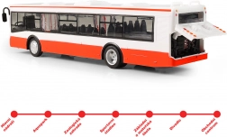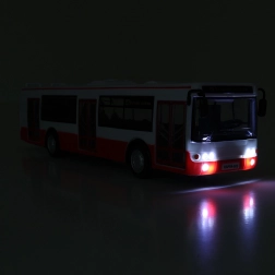 Ten szczegółowo wykonany plastikowy autobus o długości 28 cm ożywi każdą dziecięcą zabawę. Po otwarciu drzwi rozlega się zapowiedź przystanków w języku czeskim, a przy zamykaniu dodatkowo migają przednie światła. Dzięki napędowi typu pull-back autobus sam rusza, dostarczając mnóstwo dynamicznej zabawy.