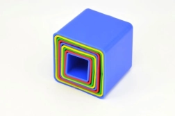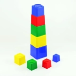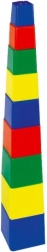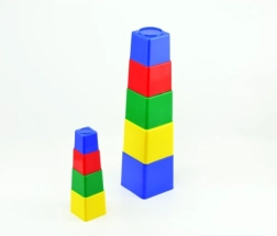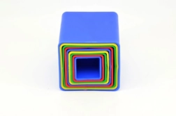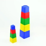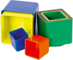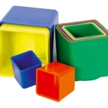 Dziewięć kolorowych plastikowych klocków dla najmłodszych wspiera rozwój małej motoryki, logicznego myślenia oraz koordynację oko–ręka. Puste w środku klocki można układać w wieżę i wkładać jeden w drugi, największy ma 9 × 9 × 9 cm. Odpowiednie od 1 roku, wyprodukowano w Czechach. Kolorystyka w miksie kolorów w zależności od stanów magazynowych.