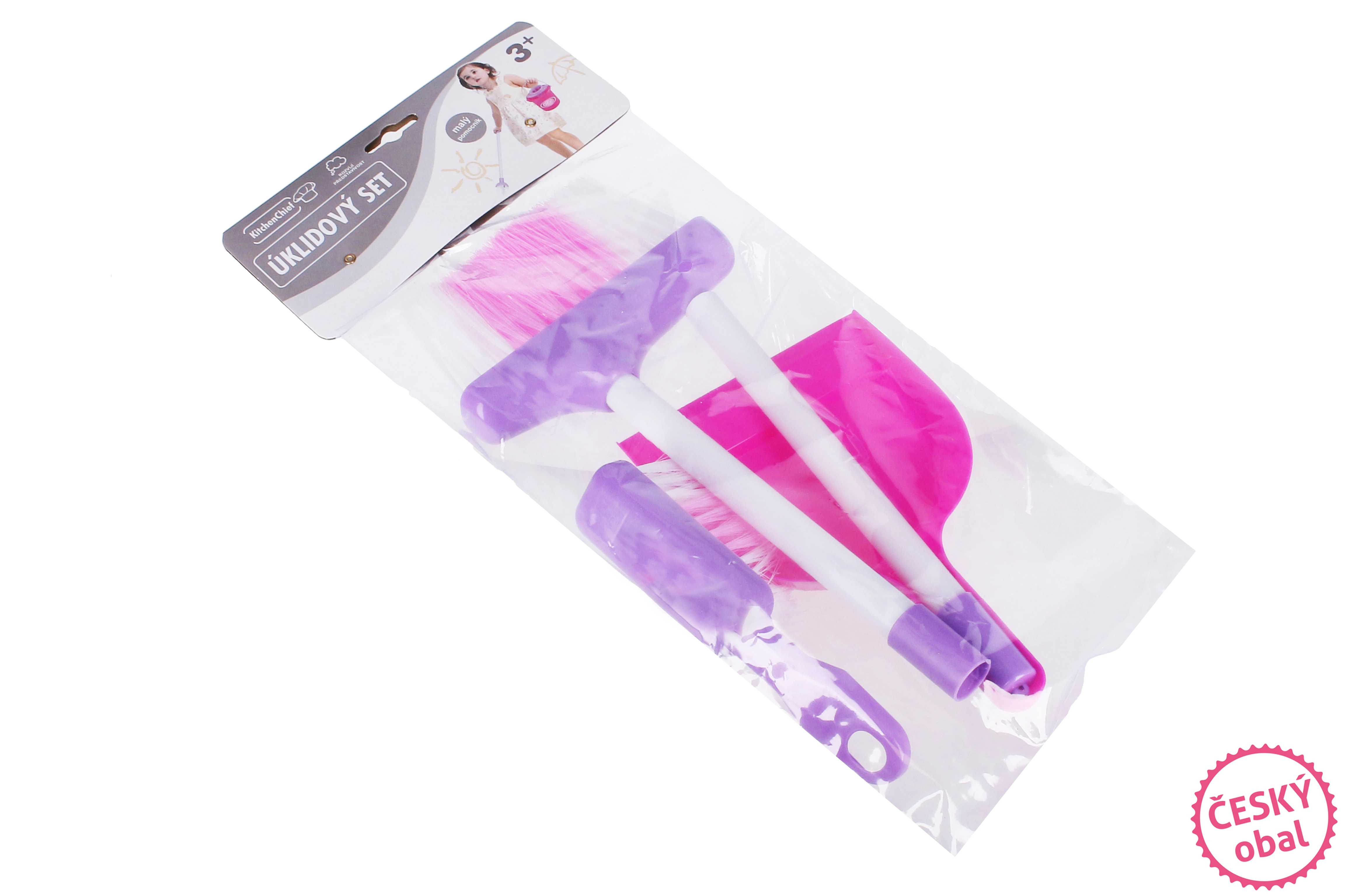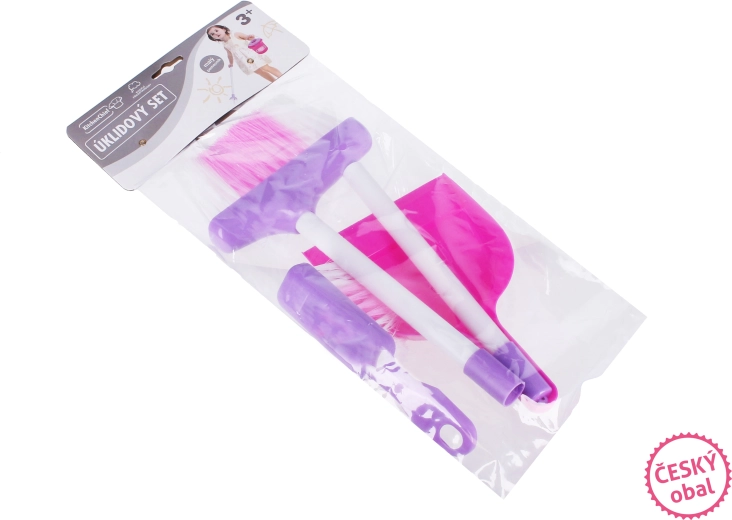 Praktyczny dziecięcy zestaw do sprzątania składa się z 3 elementów – szufelki, zmiotki i składanego mopa/miotły. Wykonany z wytrzymałego plastiku w różowo-białym kolorze, idealny do zabawy w dom i rozwijania motoryki małej. Składany mop/miotła łatwo mieści się w mniejszym pudełku na zabawki.