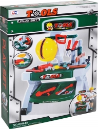 Dziecięcy stolik warsztatowy z bogatym zestawem narzędzi dla małych majsterkowiczów oferuje wszystko, co potrzebne do kreatywnej zabawy i rozwoju motoryki. Zawiera kask, śruby, nakrętki, koła zębate, szczypce, młotek, klucze, piłkę, kombinerki, śrubokręty oraz imadło. Kompaktowe wymiary 44 × 28 × 71 cm gwarantują łatwe ustawienie w pokoju dziecięcym.