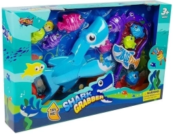 Rekin z interaktywnym mechanizmem szczęk dla łatwego chwytania i "łowienia" rybek. Niebieski design z detalami oczu i zębów pobudza do zabawy.