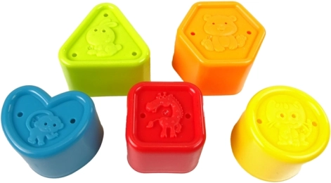 Kolorowe kubeczki idealne do układania w stos oraz zabawy w wodzie. Pomagają rozwijać małą motorykę dziecka.