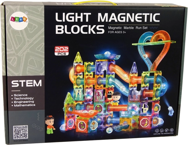 Odkryj kreatywną zabawę z zestawem, w którym łączą się magnetyczne klocki i świecąca kulkowa zjeżdżalnia. Zestaw 202 elementów wspiera motorykę małą, kreatywność i myślenie logiczne. Dzięki elementom LED i reflektorom przejazd kulek jest jeszcze bardziej atrakcyjny, także w ciemności. Świetny prezent dla dzieci od 3 lat, wykonany z bezpiecznych, certyfikowanych materiałów i z prostym magnetycznym łączeniem.