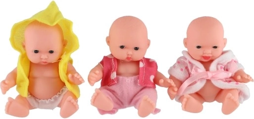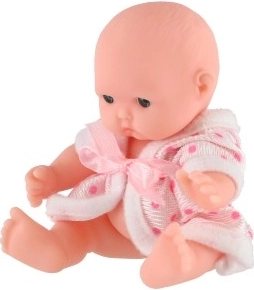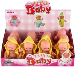 Urocza laleczka niemowlę o wysokości 12 cm z twardym plastikowym ciałkiem i tekstylnym ubrankiem ucieszy każdego małego opiekuna. Oferuje 3 różne rodzaje, rozwija wyobraźnię i zabawę w odgrywanie ról, a także jest odpowiednia od 3 lat. W praktycznym display boxie po 12 sztuk.