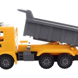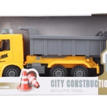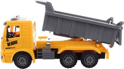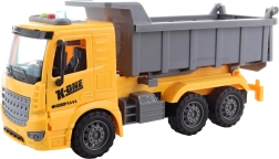Odkryj radość zabawy w budowę z tą wywrotką na baterie. Model został zaprojektowany tak, by przyciągać uwagę żółtą kabiną i szarą uchylną skrzynią ładunkową, które dzieci pokochają.