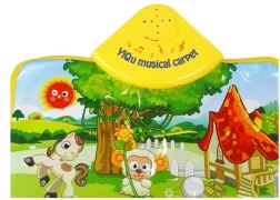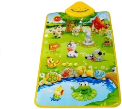Kolorowa edukacyjno-muzyczna mata pozytywnie wpływa na rozwój malucha. Rozwija zdolności manualne, koordynację oraz umiejętności słuchowe. Podczas zabawy na miękkiej macie dziecko pozna dźwięki pieska, żabki, kaczuszki, kurczaczka, krówki, konika i owieczki.