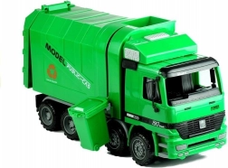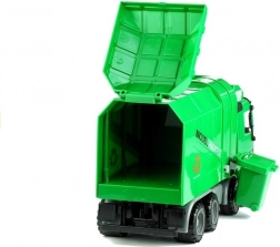 To duże zielone auto-śmieciarka ucieszy wszystkie dzieci, które kochają maszyny robocze i realistyczną zabawę. Dzięki otwieranej tylnej klapie i sprytnemu mechanizmowi przechylania łatwo zbierzesz odpady i wysypiesz je do skrzyni. Otwarta kabina mieści figurkę kierowcy i pasażera, kierownica się obraca, a ruchome lusterka wsteczne dodają autentyczności. Profilowane koła radzą sobie z różnymi nawierzchniami, a napęd friction zapewnia jazdę po lekkim popchnięciu.