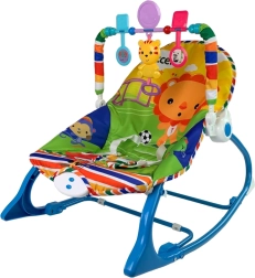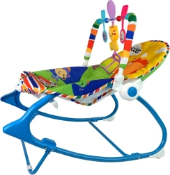 Niebieski leżaczek dziecięcy z motywem tygryska zaciekawi każde niemowlę i zapewni bezpieczne, przytulne miejsce do odpoczynku i zabawy. Naturalne bujanie uspokaja maluszka i przypomina mu znany rytm z brzuszka, a wibracje i efekty dźwiękowe pomagają w usypianiu. Dzięki uniwersalnemu zastosowaniu użyjesz go jako bujaczka dla najmłodszych oraz jako klasycznego krzesełka dla starszego dziecka.