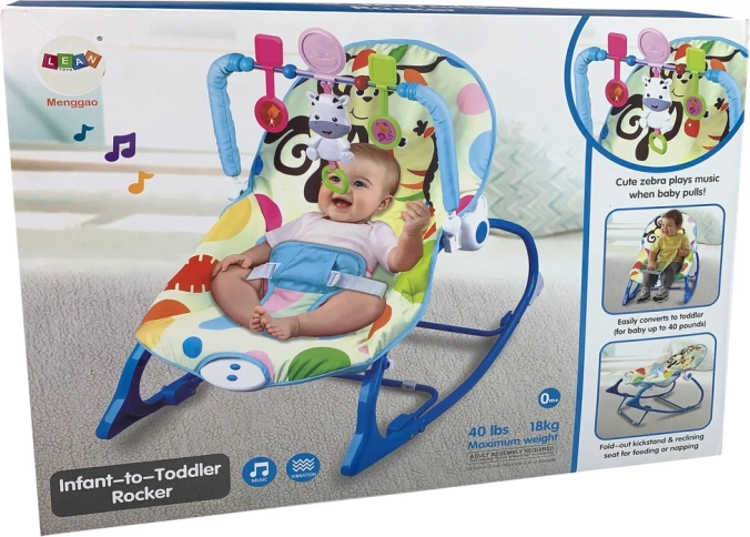 Praktyczny dziecięcy leżaczek i bujak 2w1 z motywem zebry łączy wygodę i zabawę od pierwszych dni życia aż do ok. 3 lat (do 18 kg). Oferuje uspokajające wibracje, przyjemne kołysanie oraz zdejmowany pałąk z zabawkami, gdzie zebra po pociągnięciu odtwarza melodię. Dzięki głębokiemu siedzisku, 2 pozycjom nachylenia i 3‑punktowemu pasowi jest bezpieczny i wygodny. Pokrowiec można prać w pralce.
