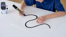 Robot niezawodnie śledzi czarną linię – wystarczy narysować trasę i obserwować, jak ją pokonuje.