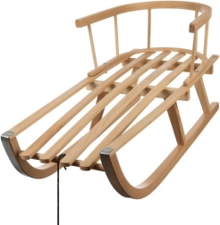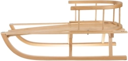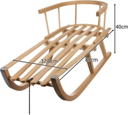 Drewniane sanki z oparciem wykonane są z twardego drewna bukowego, co gwarantuje ich długą żywotność i odporność. Sanki wyposażono w metalowe płozy, które zapewniają gładki ślizg na wszystkich rodzajach śniegu. Dzięki konstrukcji z oparciem oferują stabilność i wygodę także dla małych dzieci, a możliwość demontażu oparcia sprawia, że są odpowiednie również dla starszych dzieci.