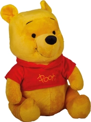 Wierne odwzorowanie Kubusia Puchatka z ikoniczną czerwoną koszulką i napisem „Pooh” ucieszy małych i dużych fanów.