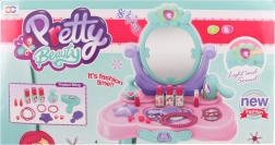 Dziecięca toaletka Pretty Beauty to idealny wybór dla małych dziewczynek, które lubią naśladować dorosłych i rozwijać swoją wyobraźnię przez zabawę w odgrywanie ról. Ten kolorowy zestaw oferuje pełne doświadczenie modowego salonu w zaciszu własnego domu.