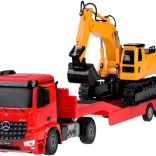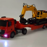 Dzięki pilotowi działającemu na częstotliwości 2,4 GHz można łatwo kierować ciężarówką z naczepą do przodu, do tyłu, skręcać, a także cieszyć się realistycznymi efektami dźwiękowymi.