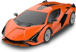 Dodaj charakter swojej kolekcji dzięki zdalnie sterowanemu samochodowi RASTAR LAMBORGHINI Sián w pomarańczowym kolorze. Model w skali 1:24 wiernie oddaje charakterystyczne linie nadwozia i sportowe elementy wnętrza, dzięki czemu ucieszy zarówno małych kierowców, jak i zapalonych fanów motoryzacji od 6. roku życia.