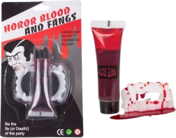 Przemień się w prawdziwego wampira w kilka sekund. Białe plastikowe kły z czerwonymi akcentami naśladują świeżą krew, a w połączeniu z tubką sztucznej krwi tworzą autentyczny, horrorowy efekt do charakteryzacji i kostiumów. Sprawdzą się na Halloween, bale przebierańców, imprezy tematyczne oraz projekty filmowe i fotograficzne.