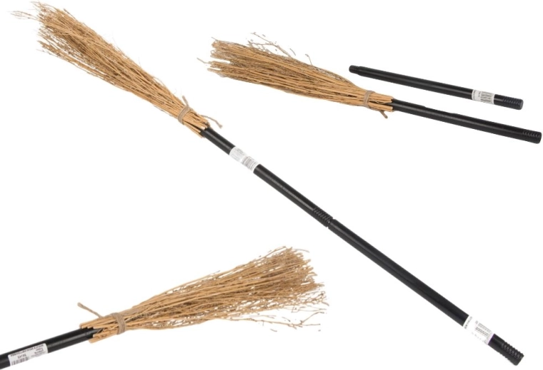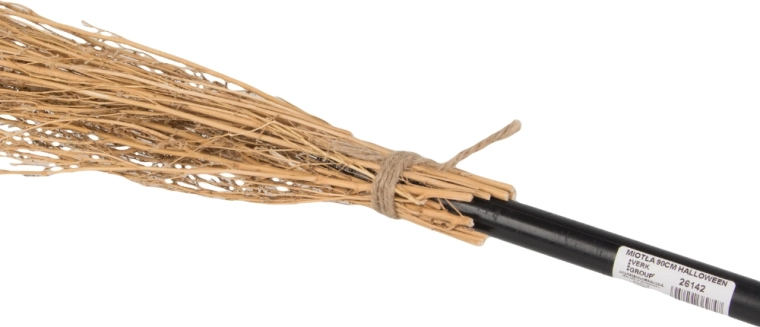 Ta czarnoksięska miotła nada twojemu halloweenowemu kostiumowi doskonałą autentyczną atmosferę. Dzięki długiej czarnej tyczce i naturalnym
