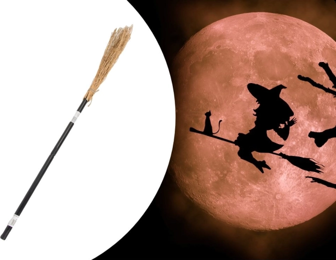 Miotła dodaje atmosfery tajemnicy i magii, świetna do zabaw dziecięcych i kostiumów.