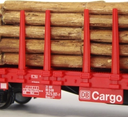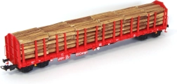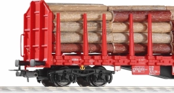 Atrakcyjny model czteroosiowego wagonu platformowego Roos‑t z kłonicami i ładunkiem drewnianych kłód, w barwach Niemieckich Kolei. Wagony tego typu są również wykorzystywane do transportu innych półproduktów z drewna, a także stali. Realistycznie odwzorowany ładunek można wyjmować, a rozstaw kłonic można regulować. W zestawie znajduje się ponadto kilka zapasowych kłonic. Dzięki dopracowanemu odlewowi, wysokiej jakości kontrastowemu malowaniu i ostrym nadrukom doskonale prezentują się detale konstrukcji i osprzętu. Podłoga wagonu wiernie oddaje także ryflowanie powierzchni, a czoła zdobią dołożone poręcze i stopnie. Dla większej różnorodności w składach z wcześniej wydanymi modelami tego typu zmieniono oznaczenie wagonu. Precyzyjnie zaprojektowane i zmontowane wózki gwarantują pierwszorzędne własności jezdne. Główne cechy: cztery osie, realistyczny ładunek, zdejmowane kłonice, gniazdo według NEM 362 z kinematyką krótkiego sprzęgu