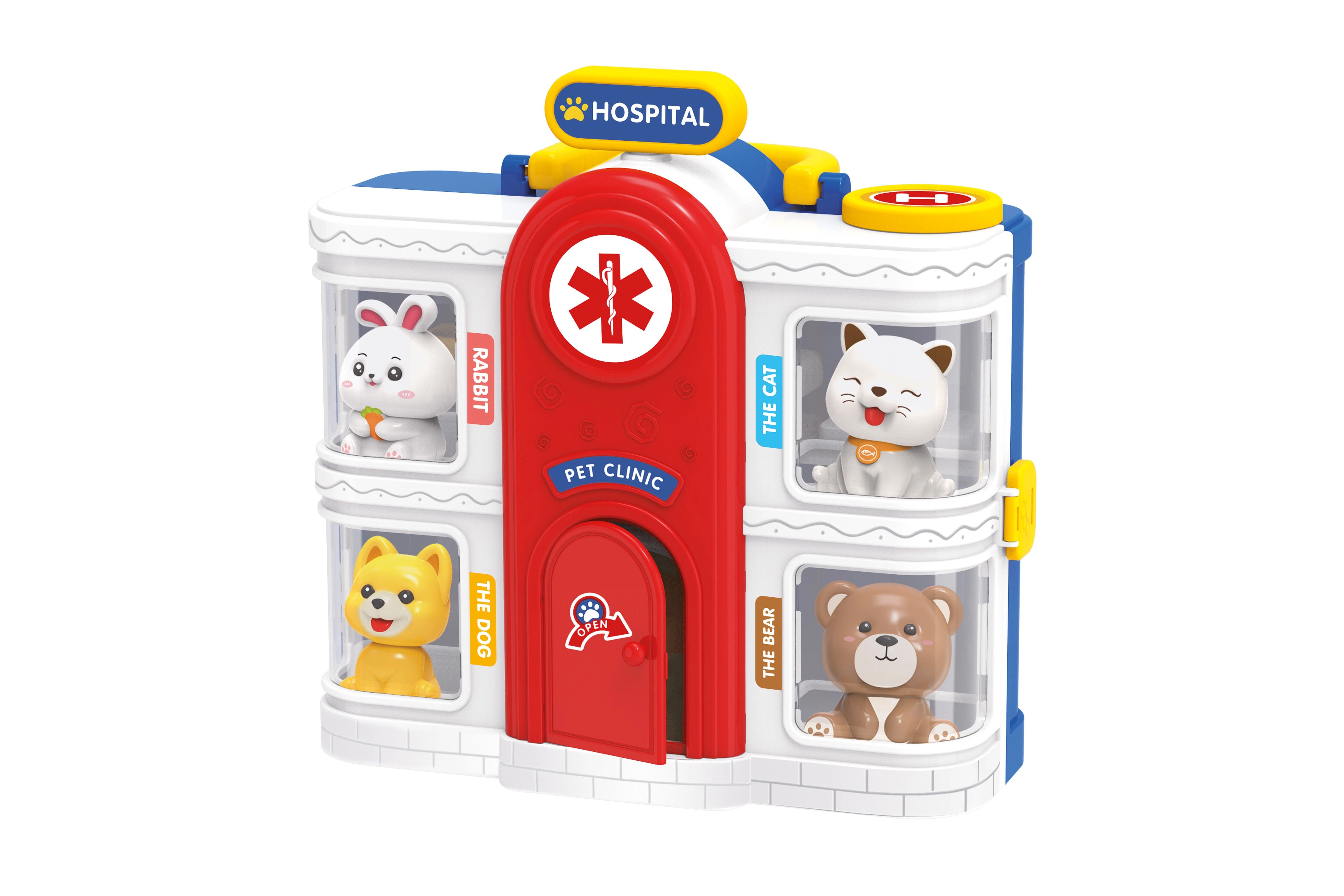 Przedstawiamy Przenośny szpital dla zwierząt z efektami, który jest niezbędną częścią każdego dziecięcego pokoju. Ten zestaw do zabawy oferuje jednocześnie rozrywkę i naukę.