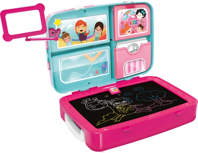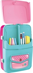 Ten kreatywny plecak dla dzieci w kolorze różowym o wielkości 28 cm to idealny towarzysz dla Twojego dziecka. Zawiera praktyczne przegródki na przybory plastyczne oraz tablicę magnetyczną do kred i markerów.