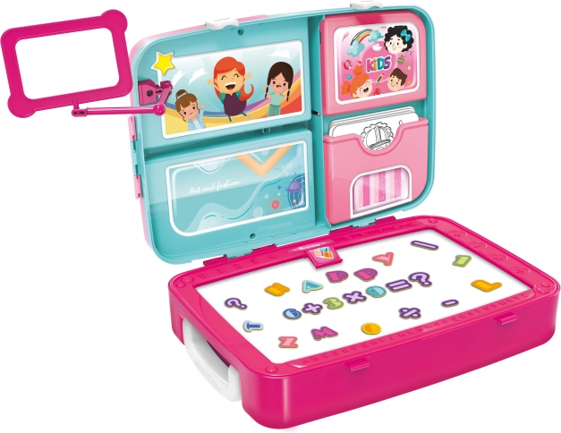 Kreatywny różowy plecak dla dzieci 28 cm z praktycznymi przegródkami i tablicą magnetyczną. Idealny do tworzenia i nauki.
