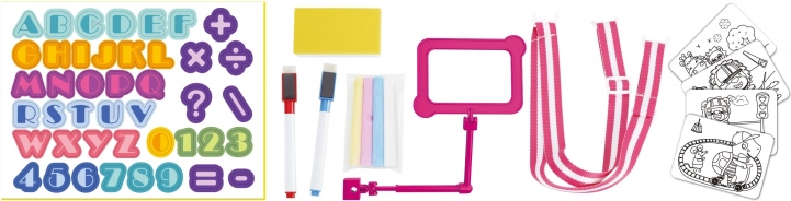 - Zintegrowane magnesy do zabawy z cyframi i literkami.