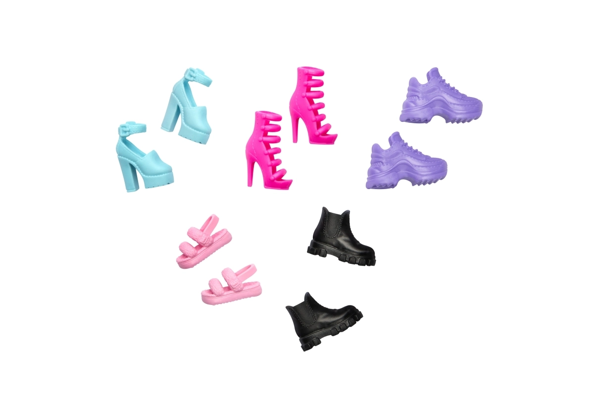 Ubierz lalkę Barbie na każdą okazję dzięki tej kolekcji butów inspirowanej najnowszymi trendami obuwniczymi! Zestaw zawiera mieszankę kolorów i stylów, takich jak szpilki, botki i tenisówki, oraz obejmuje pięć par butów Barbie dla modowej zabawy i wszechstronności! Buty pasują do większości typów sylwetek Barbie. Wiek 3+