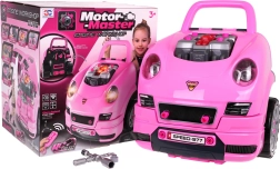 Odkryj zabawny świat silników i napraw z tym interaktywnym różowym autem dla dzieci od 3 lat. Dzieci pokochają podnoszoną maskę, rozbieralny silnik, realistyczny kokpit z przyciskiem start, klaksonem i sygnałem ostrzegawczym. W zestawie pilot w kształcie kluczyków do efektów świetlnych i dźwiękowych, narzędzia oraz śrubki – wszystko dla rozwoju małej motoryki i koordynacji oko–ręka.