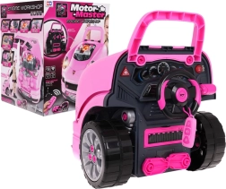 Różowy samochód dla małego mechanika z interaktywnym kokpitem i zdalnym sterowaniem, 3+