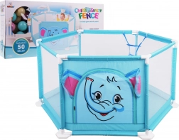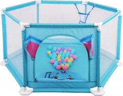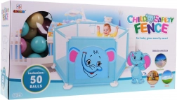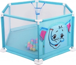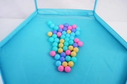 W zestawie znajduje się 50 kolorowych piłeczek, a wewnątrz umieszczono także kosz do rzucania, który wspiera motorykę i zapewnia świetną zabawę. Kojec jest łatwy do przenoszenia, nadaje się do użytku w pomieszczeniach i na zewnątrz, a jego powierzchnie są proste w utrzymaniu.