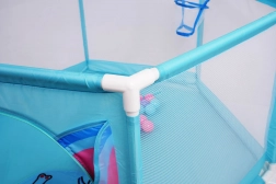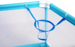 Zintegrowany wewnątrz kojca kosz wspiera aktywną zabawę i rozwój koordynacji. W zestawie znajduje się 50 kolorowych piłeczek.