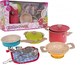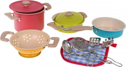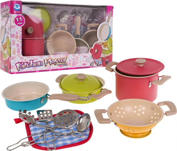 Rozwijaj dziecięcą wyobraźnię z 11‑elementowym zestawem metalowych naczyń i narzędzi dla małych kucharzy od 3 lat. Zestaw zawiera garnki z pokrywkami, patelnię, durszlak oraz przybory i zachwyca żywymi kolorami, trwałym metalowym wykonaniem oraz bogatym wyposażeniem do realistycznej zabawy w gotowanie.