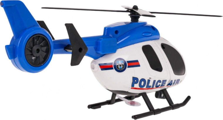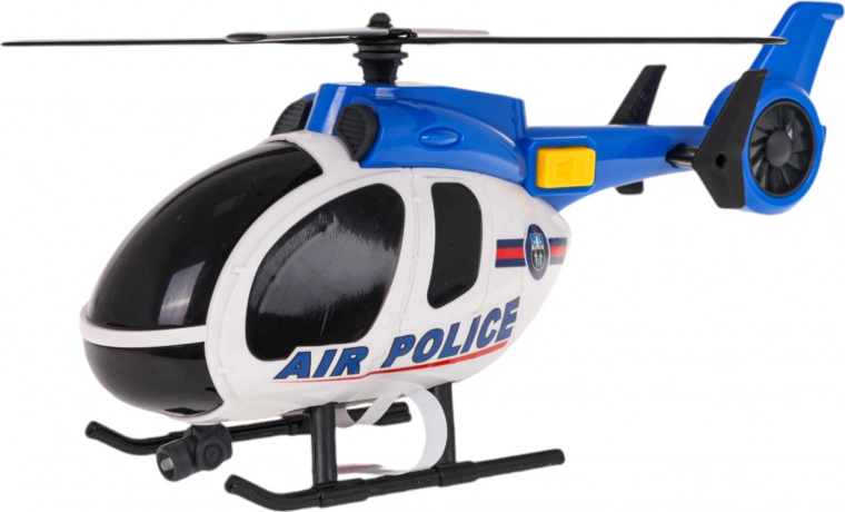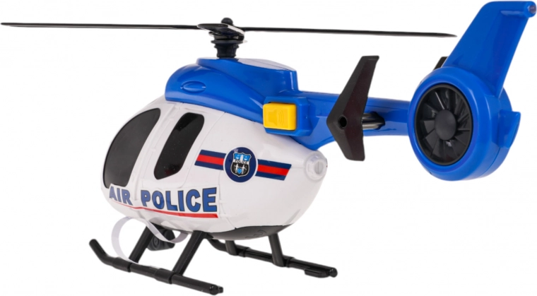 Ten realistyczny policyjny zestaw dostarcza dzieciom godzin kreatywnej zabawy. Helikopter z napisem AIR POLICE zachwyca przednim i tylnym oświetleniem oraz autentycznymi dźwiękami lotu i alarmu. Wirniki można łatwo obracać ręcznie, co wspiera wyobraźnię podczas akcji w powietrzu.